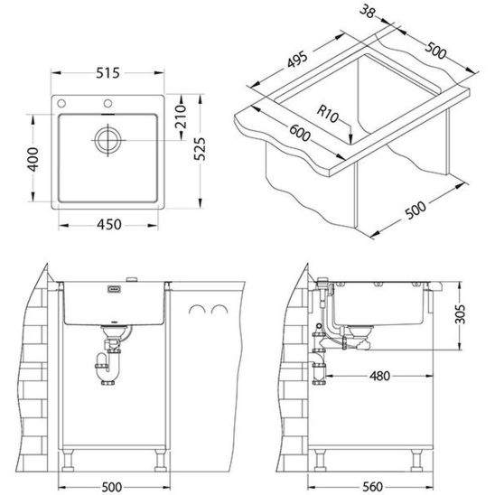 - dimensioni del taglio del piano di lavoro: 49,5 x 50 cm