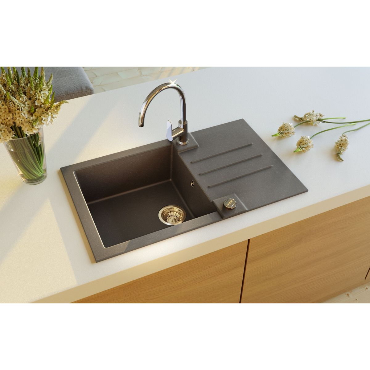Il lavello da cucina Alveus Rock 30 è realizzato in Granital, un materiale resistente che si caratterizza per l'elevata resistenza ai graffi, agli urti e alle alte temperature. Il Granital è anche resistente alle macchie e ai detergenti, grazie al quale il lavello mantiene un aspetto estetico gradevole per lungo tempo. La struttura a vasca singola garantisce la comodità nell'uso quotidiano, mentre la profondità adeguata della vasca consente di lavare comodamente le stoviglie. Il lavello in granito Alveus Rock 30 è una soluzione pratica per le cucine moderne, dove contano funzionalità, durata ed estetica. Il prodotto si abbina perfettamente a diversi tipi di piani di lavoro da cucina ed è una scelta versatile sia per le cucine private che per gli appartamenti in affitto.