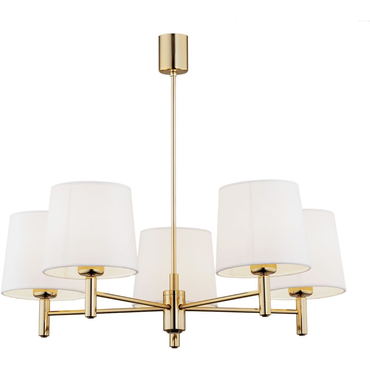 Il grande ed elegante lampadario Ponte Plus. Si tratta di una lampada di classe, un lampadario che sottolinea lo stile della stanza, ideale per gli interni glamour in cui l'arredamento di gusto è importante. La lampada ha un paralume in tessuto e una struttura imponente e ben costruita in acciaio massiccio ottonato (colore oro). Il prodotto è stato interamente fabbricato in Polonia da Argon.