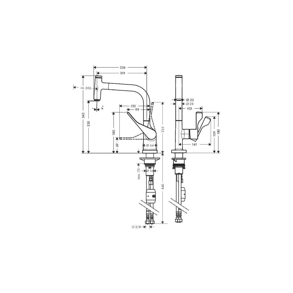 - lunghezza di estensione del tubo flessibile: fino a 50 cm