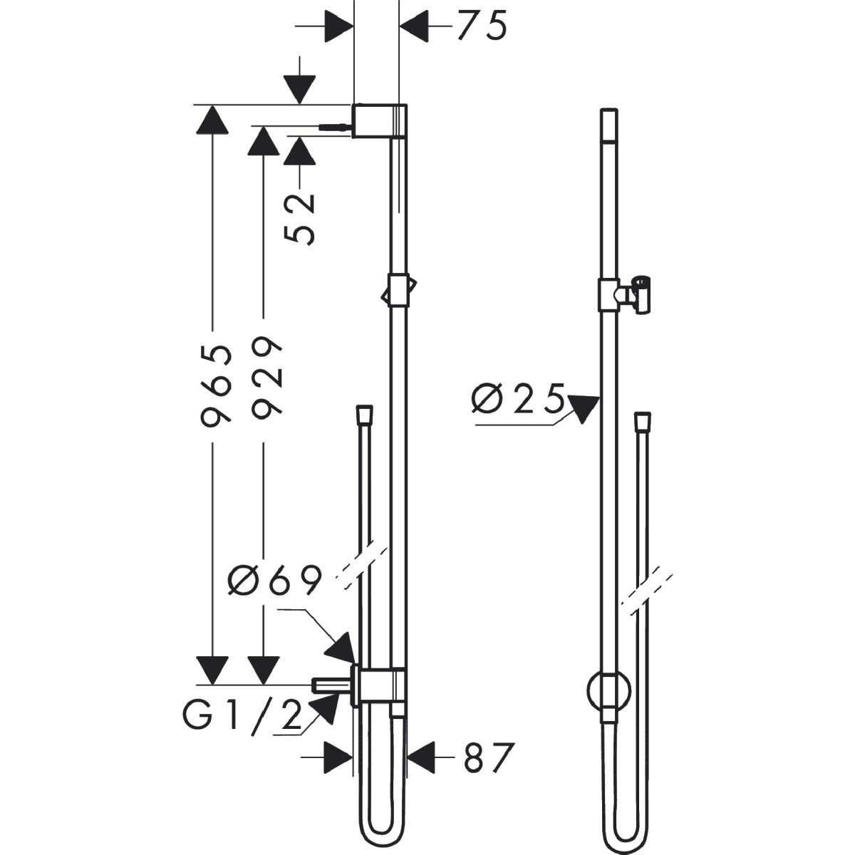 - diametro dell'asta doccia: 25 mm