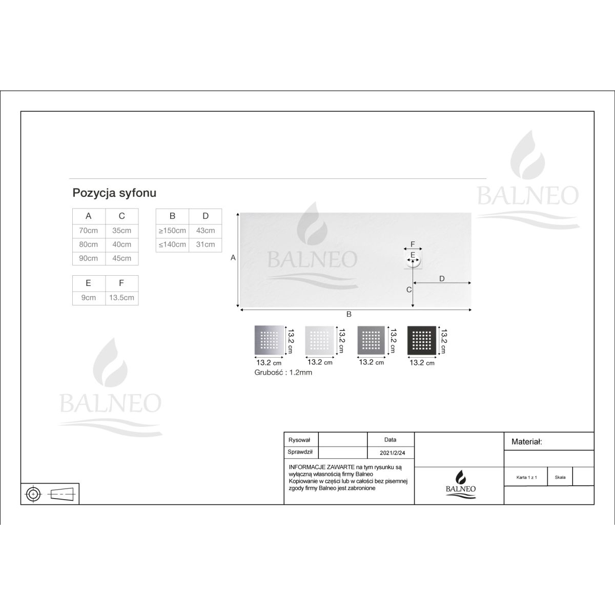 Griglia e sifone sono venduti separatamente.