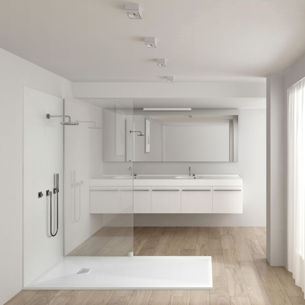 Le finiture interne bianche hanno guadagnato popolarità sull'onda del crescente interesse per lo stile scandinavo e il minimalismo, creando un'impressione di spaziosità, pulizia e trasparenza. Combinando un piatto doccia bianco con piastrelle scure o a fantasia o con l'immancabile finto legno, si crea un contrasto che dà un'impressione di alta estetica, grazia e bello stile.