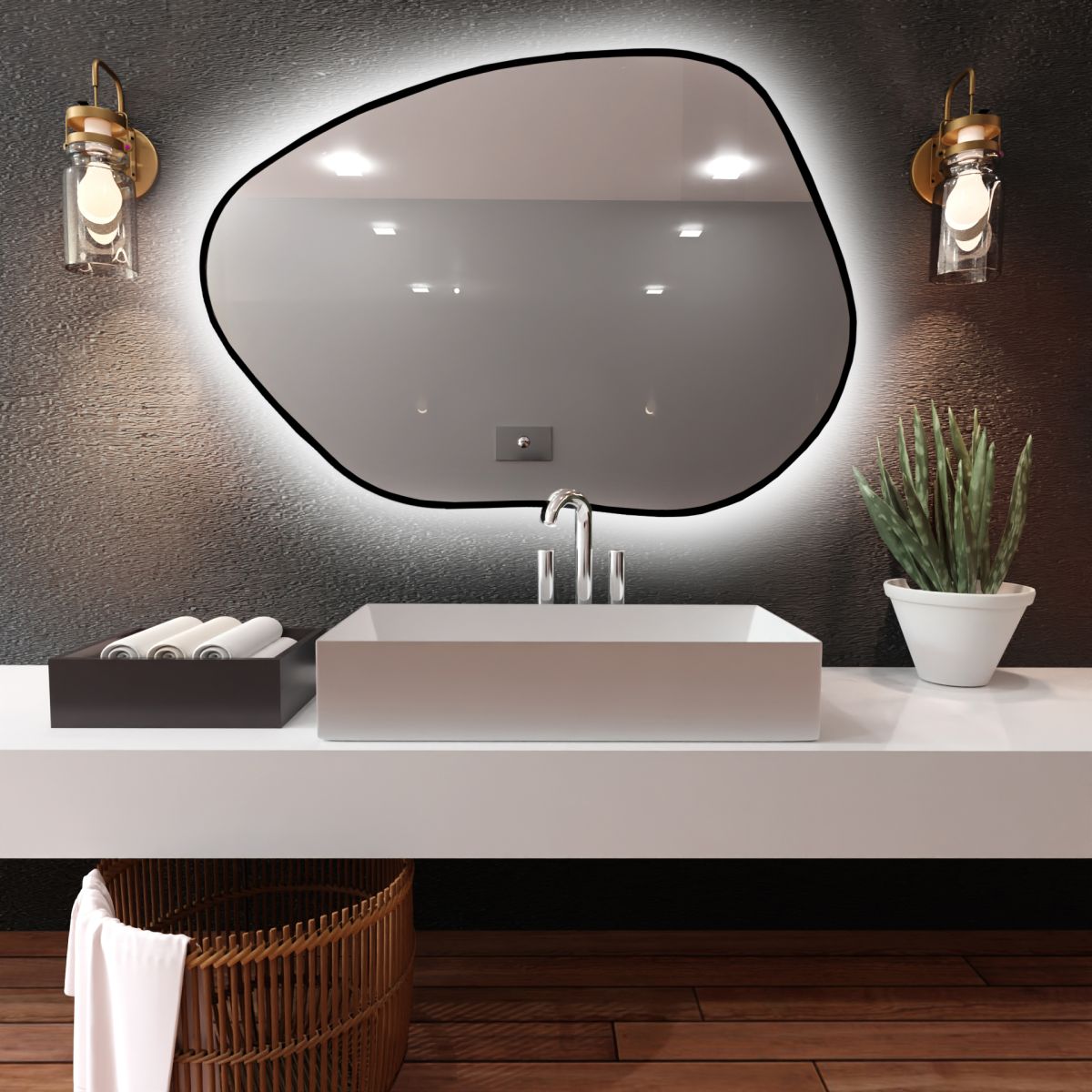 Specchi illuminati in forme fantasiose, questa è la prossima iterazione della collezione Bright. Bright Stain è un perfetto accessorio per interni o uno specchio da bagno funzionale illuminato da una luce LED morbida e diffusa. La forma insolita dello specchio a LED, con la sua delicata striscia di luce, conferisce all'ambiente un aspetto fresco e leggermente misterioso. Lo specchio è ideale per le stanze piccole, che ingrandisce otticamente, anche grazie alla luce.