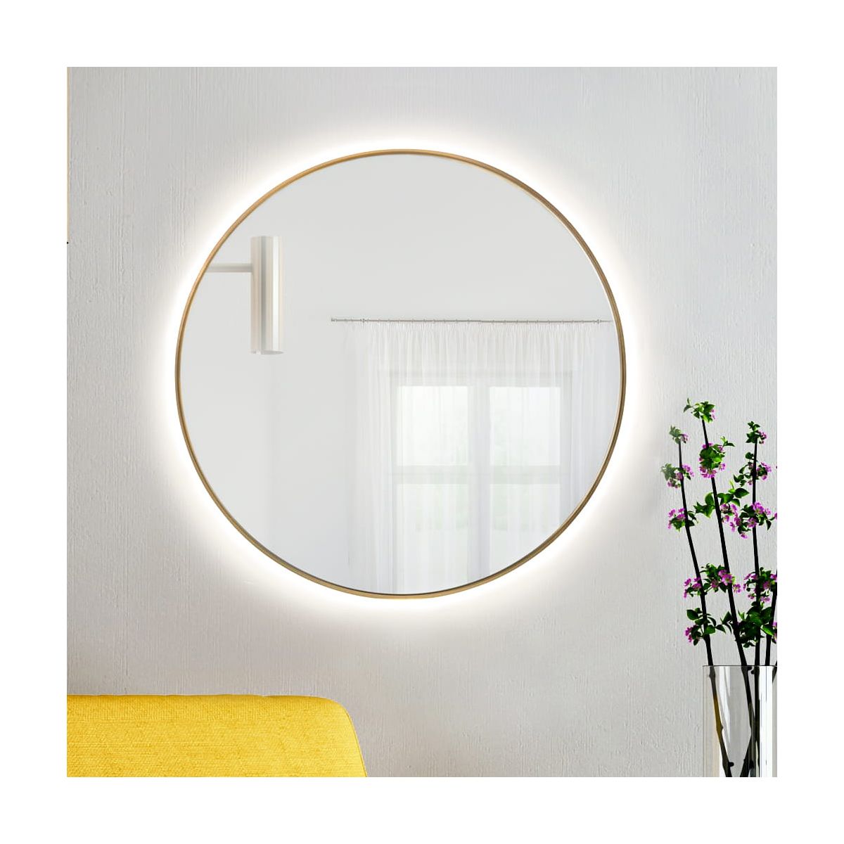 Baltica Design Tiny Border Bright specchio 90x90 cm rotonda con illuminazione con tappetino riscaldante oro 5904107912387