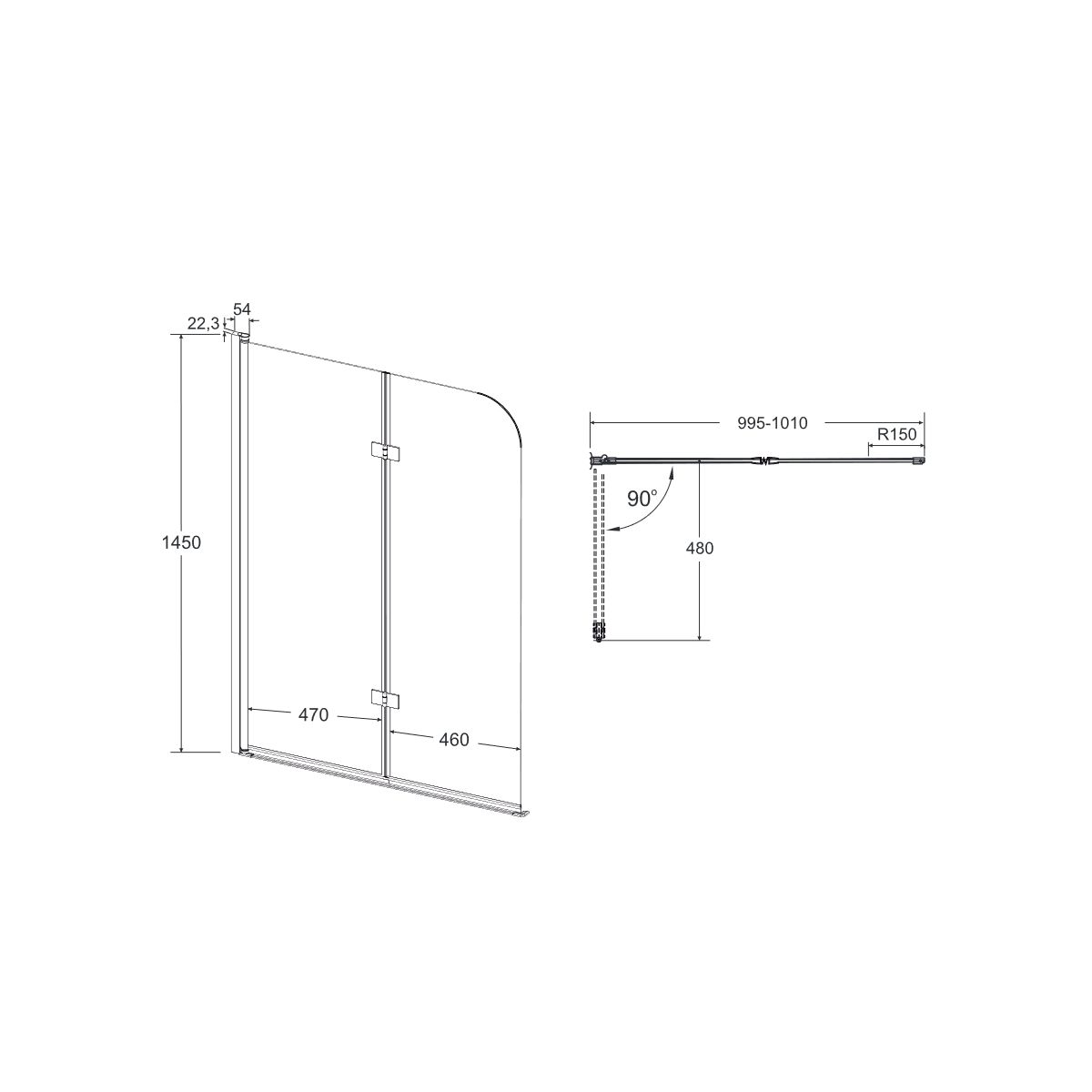Besco Avigo parete vasca 100 cm 2 ante cromo lucida/vetro trasparente PNA-2S