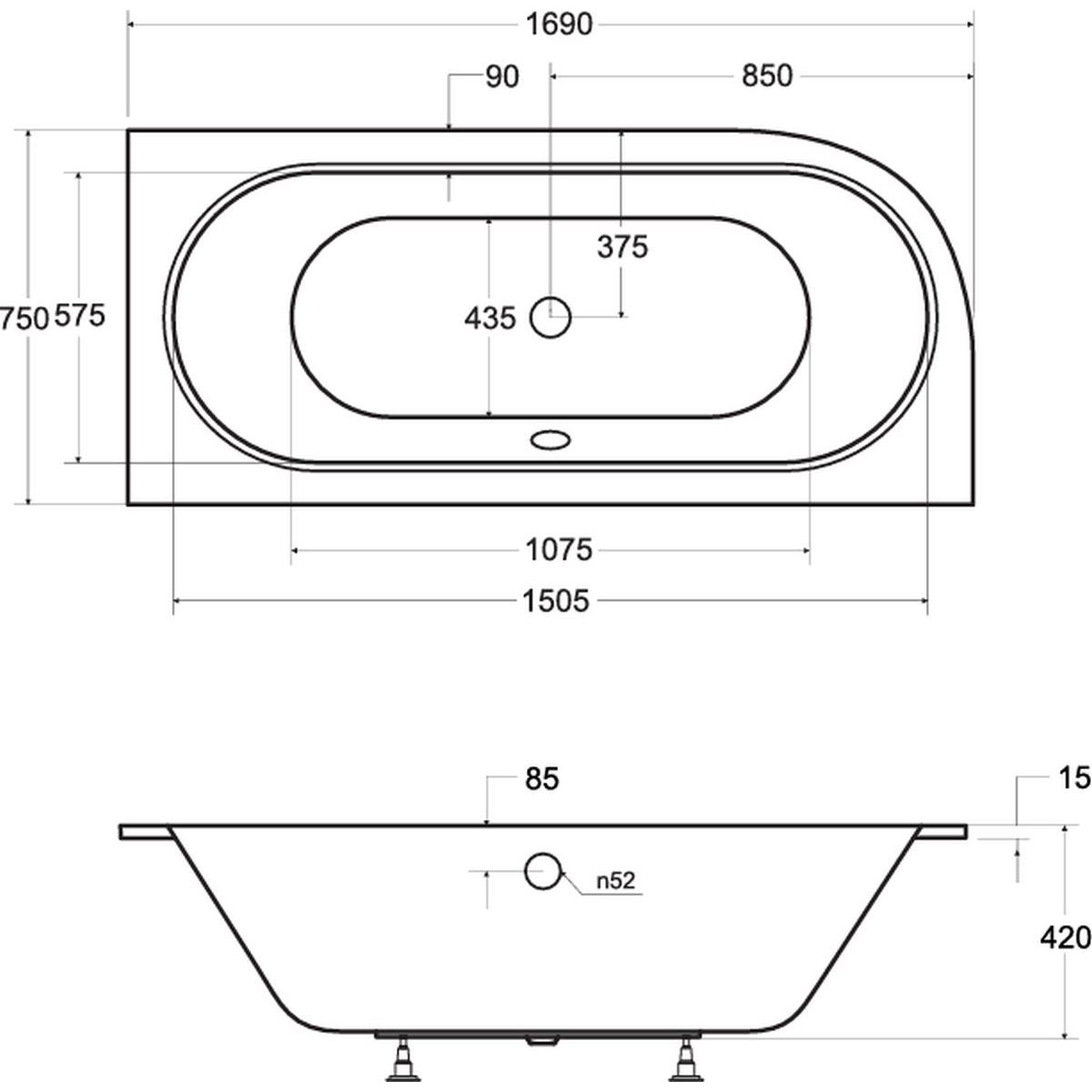 Besco Avita vasca da bagno angolare slim 169x75 cm destra bianco #WAV-170-NPS