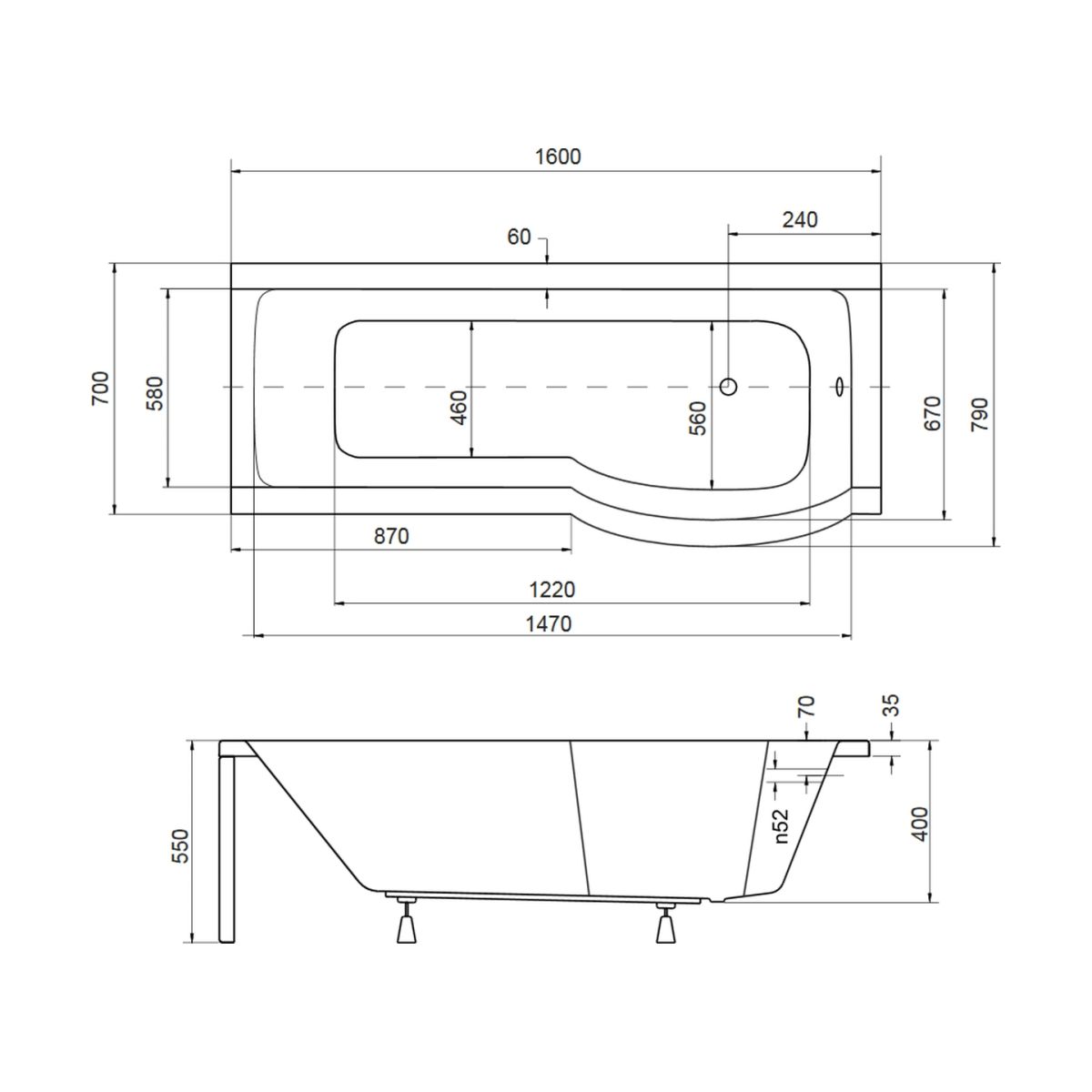 Besco Inspiro vasca da bagno con parete vasca 160x70 cm destra bianco #WAI-160-NPR