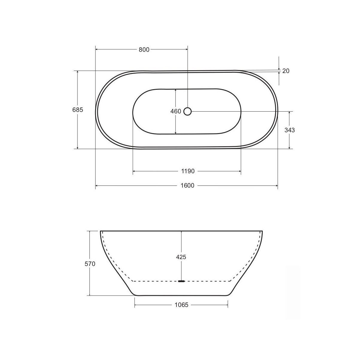 Besco Moya vasca da bagno freestanding 160x68 cm ovale bicolore #WMD-160-MG