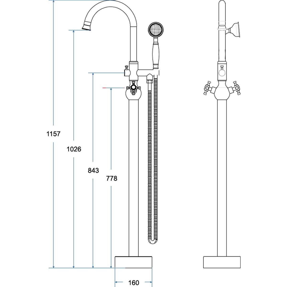 Besco Retro rubinetto per vasca e doccia a terra cromo BW-RI-CH