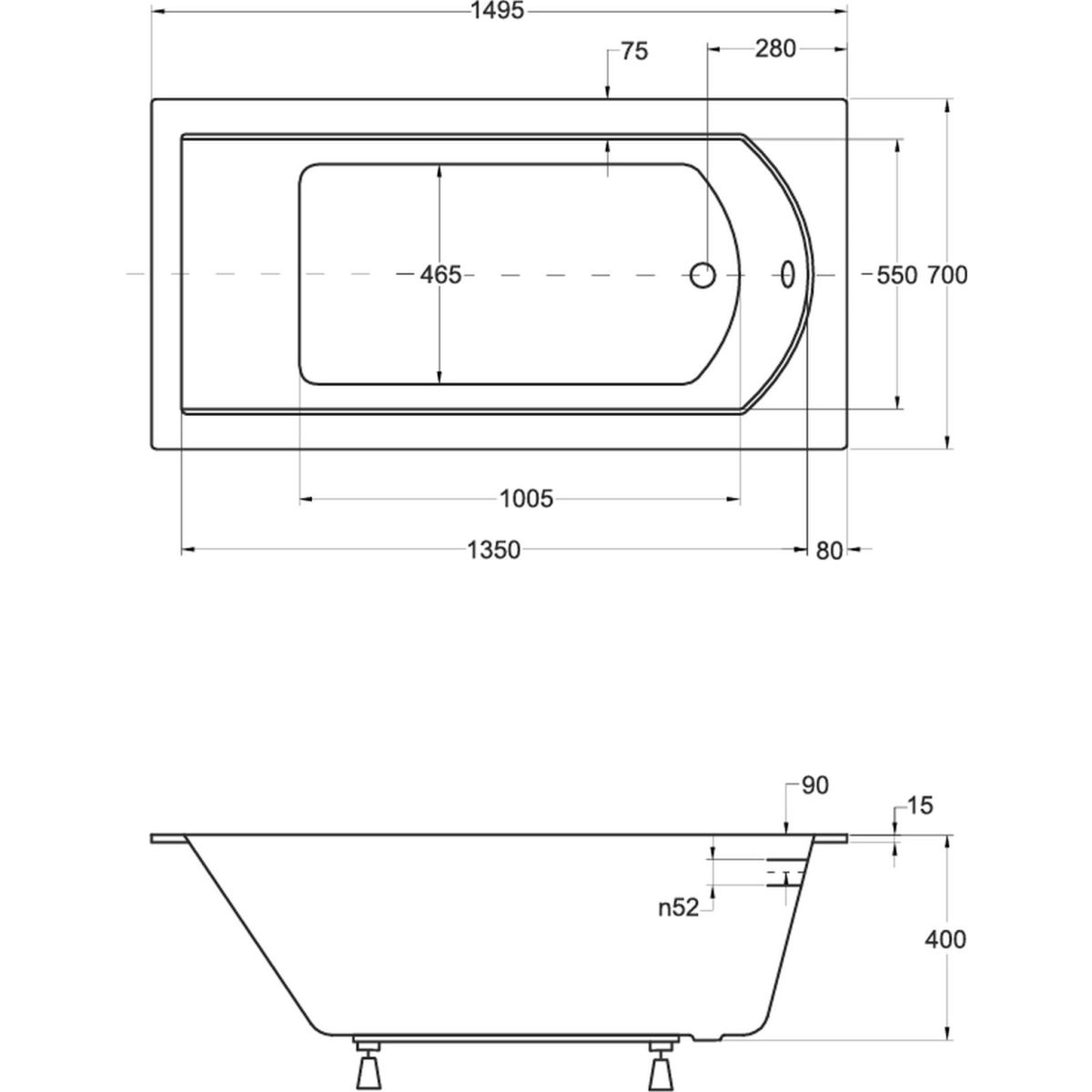 Besco Shea Slim vasca da bagno rettangolare slim 149.5x70 cm bianco #WAS-150-SL