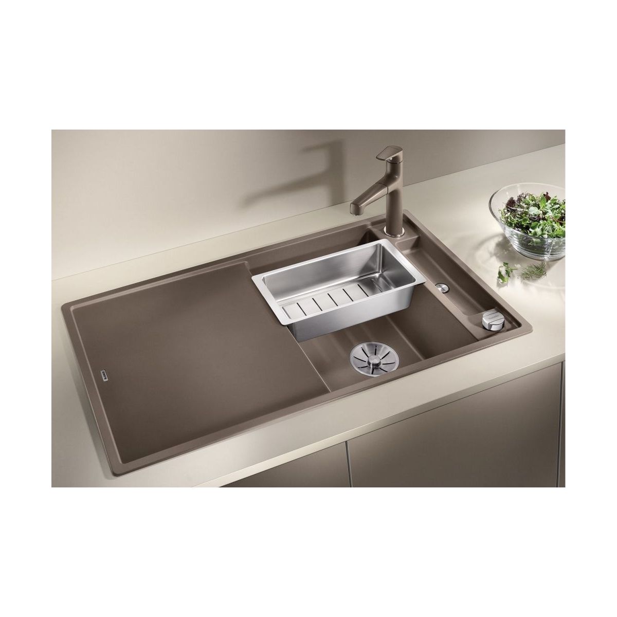 - il materiale (Silgranit) è composto per l'80% da granito naturale combinato con ceramica, acrilico e pigmenti colorati, per garantire proprietà uniche e un aspetto bellissimo