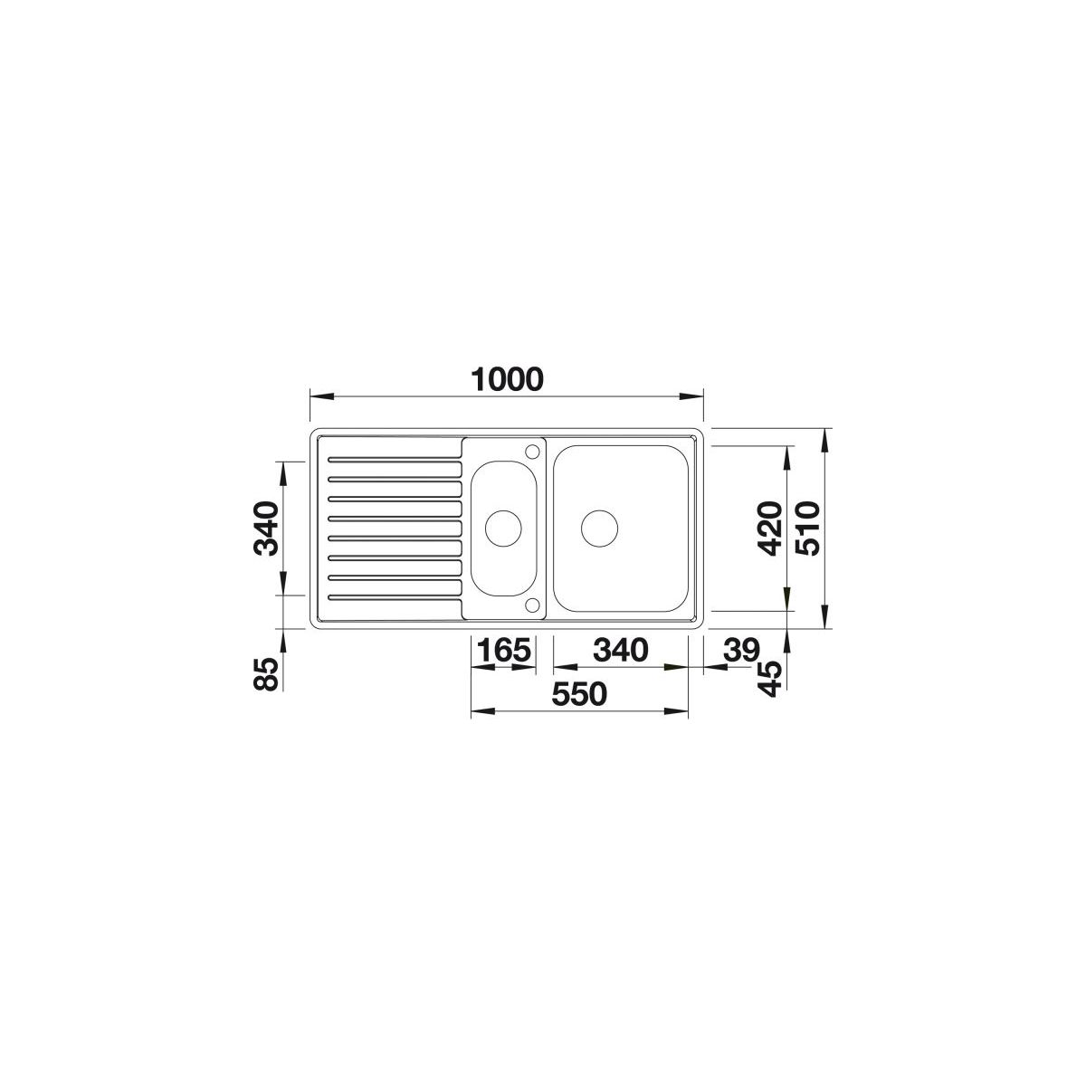 - dimensioni del lavello: 100 x 51 cm