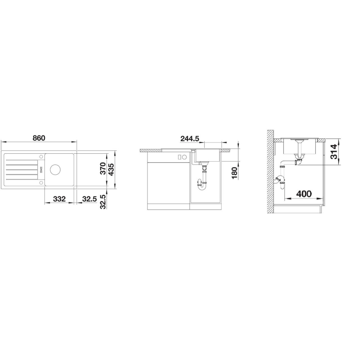 - dimensioni del lavello: 86 x 43,5 cm