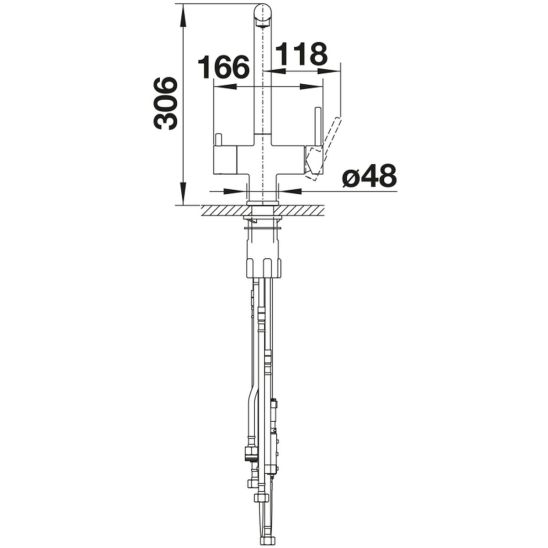 - ha una leva separata sul lato destro per l'acqua miscelata (calda e fredda) e una leva sul lato sinistro per l'acqua filtrata