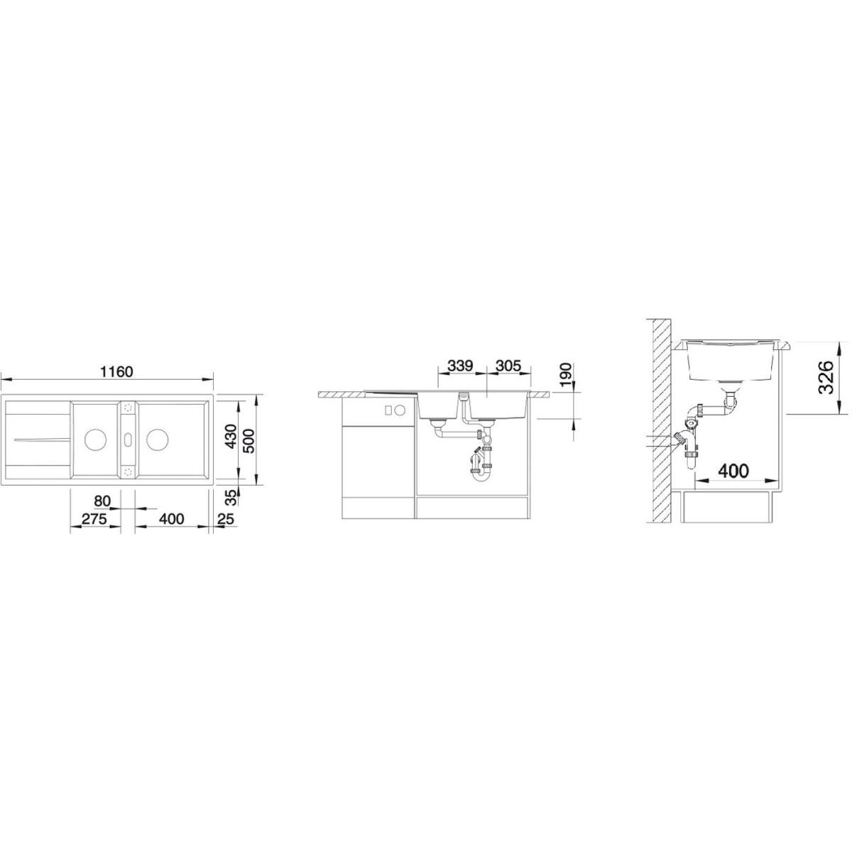 Blanco Metra 8 S lavello in granito 116x50 cm antracite 513071