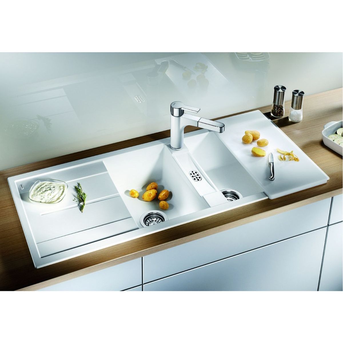 - il lavello da incasso può essere posizionato sotto il lavello con il kit di montaggio (venduto separatamente)