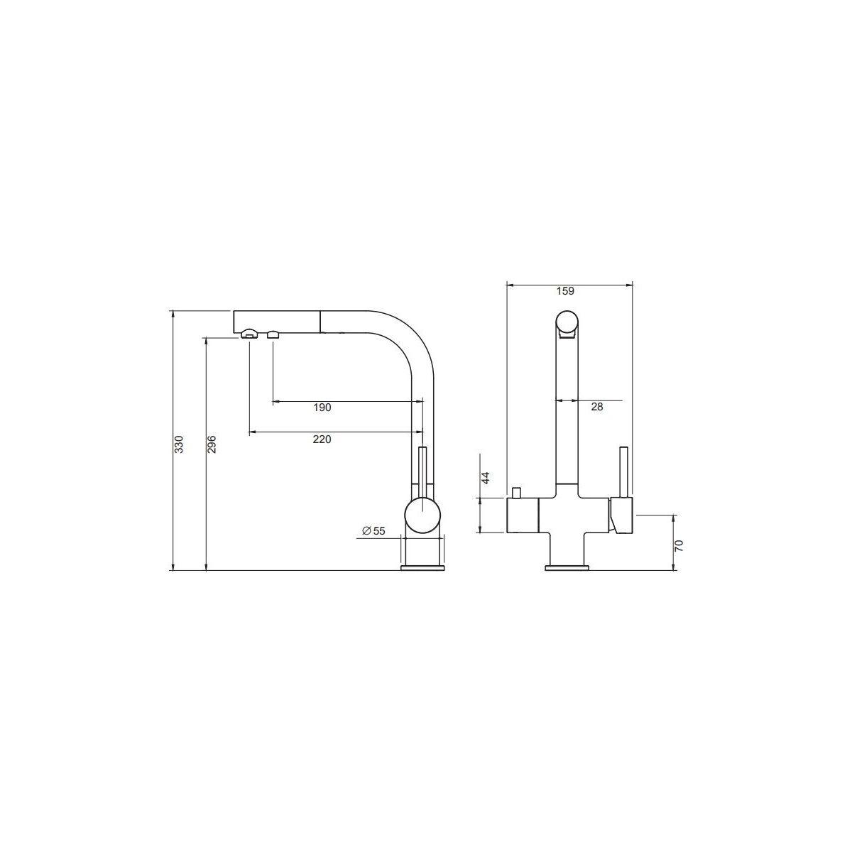– 2 aeratori, quattro prese d'acqua: acqua calda e fredda, acqua filtrata pulita in due versioni: acqua pulita e acqua mineralizzata