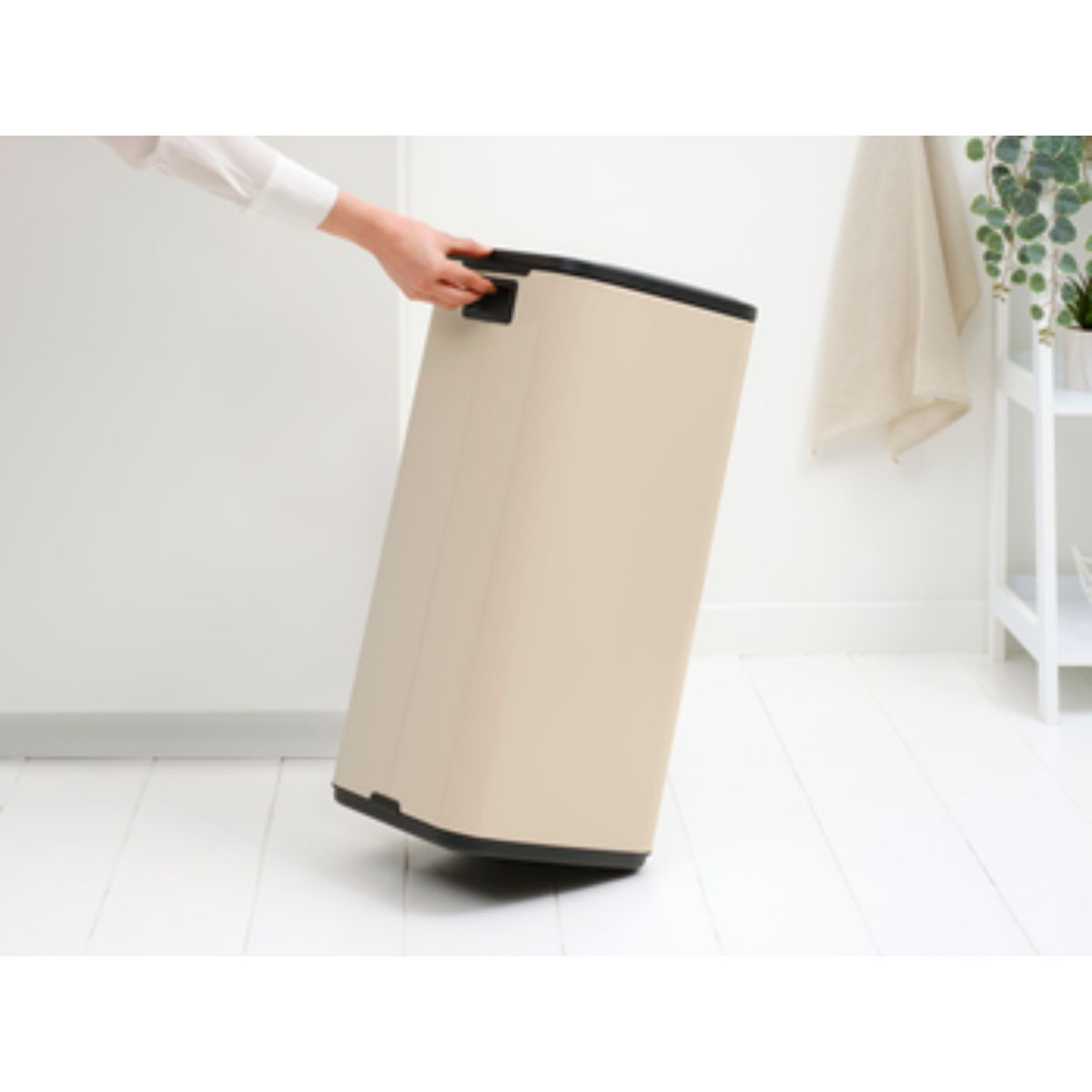 Sì, una pattumiera può essere bella! La pattumiera Bo Touch di Brabantia unisce un design elegante a 30 litri di capacità. È stata realizzata con amore per la casa e attenzione per il pianeta. Grazie alla sua forma rettangolare, questa pattumiera salvaspazio si adatta perfettamente a un angolo o a una parete. L'apertura soft-touch assicura una manipolazione facile e leggera, con un semplice tocco della mano! La maniglia di trasporto integrata consente di spostare facilmente il contenitore da una stanza all'altra. Vai Bo!