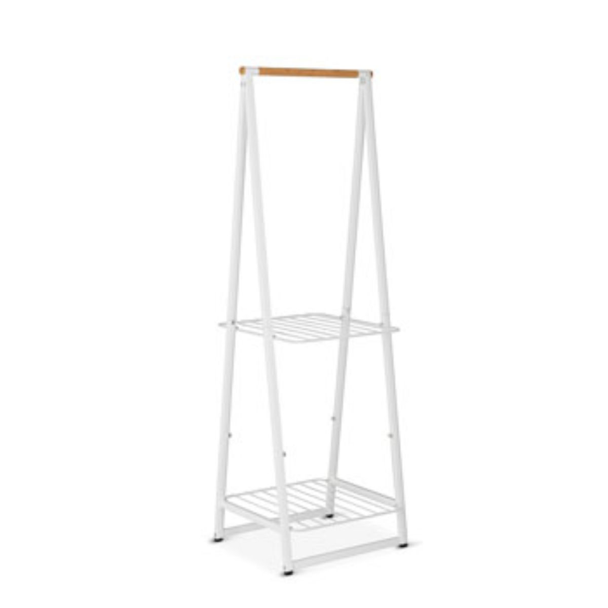 L'appendiabiti indipendente con una resistente barra in bambù e due ripiani regolabili in altezza è perfetto per ogni casa. Utilizza il modello Linn come stendibiancheria ecologico o per asciugare i vestiti in modo elegante, appendendoli alle grucce sulla resistente barra. Hai bisogno di uno spazio elegante dove riporre i tuoi oggetti? Scegli il modello Linn. Perfetto per il bagno, la lavanderia o l'ingresso.