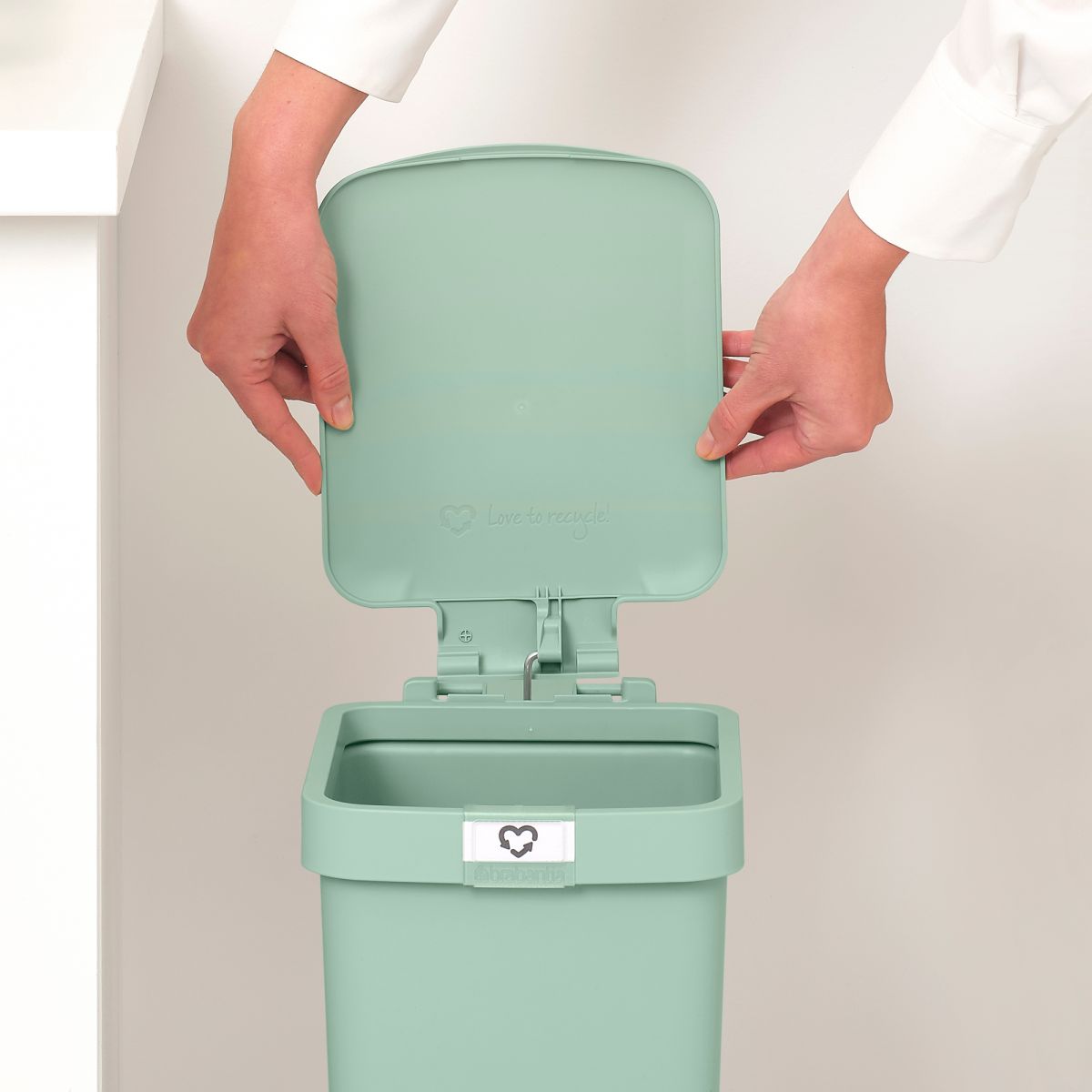 Cercate di essere ecologici nella vostra vita quotidiana? Fate il passo successivo con il bidone a pedale StepUp 10 L. È realizzato con il 91% di materiali riciclati. È progettato per separare i rifiuti riciclabili. È possibile apporre il proprio marchio sulla maniglia anteriore per indicare gli oggetti da inserire. Occupa pochissimo spazio, quindi potete posizionarlo in un luogo comodo. Se amate l'idea del riciclo, questo è il bidone che fa per voi.