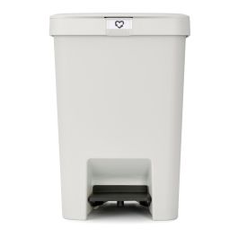 Cercate di essere ecologici nella vostra vita quotidiana? Fate il passo successivo con il bidone a pedale StepUp 25 L. È realizzato con il 91% di materiali riciclati. È progettato per separare i rifiuti riciclabili. È possibile apporre il proprio marchio sulla maniglia anteriore per indicare gli oggetti da inserire. Se il riciclaggio è importante per voi, questo è il bidone che fa per voi.
