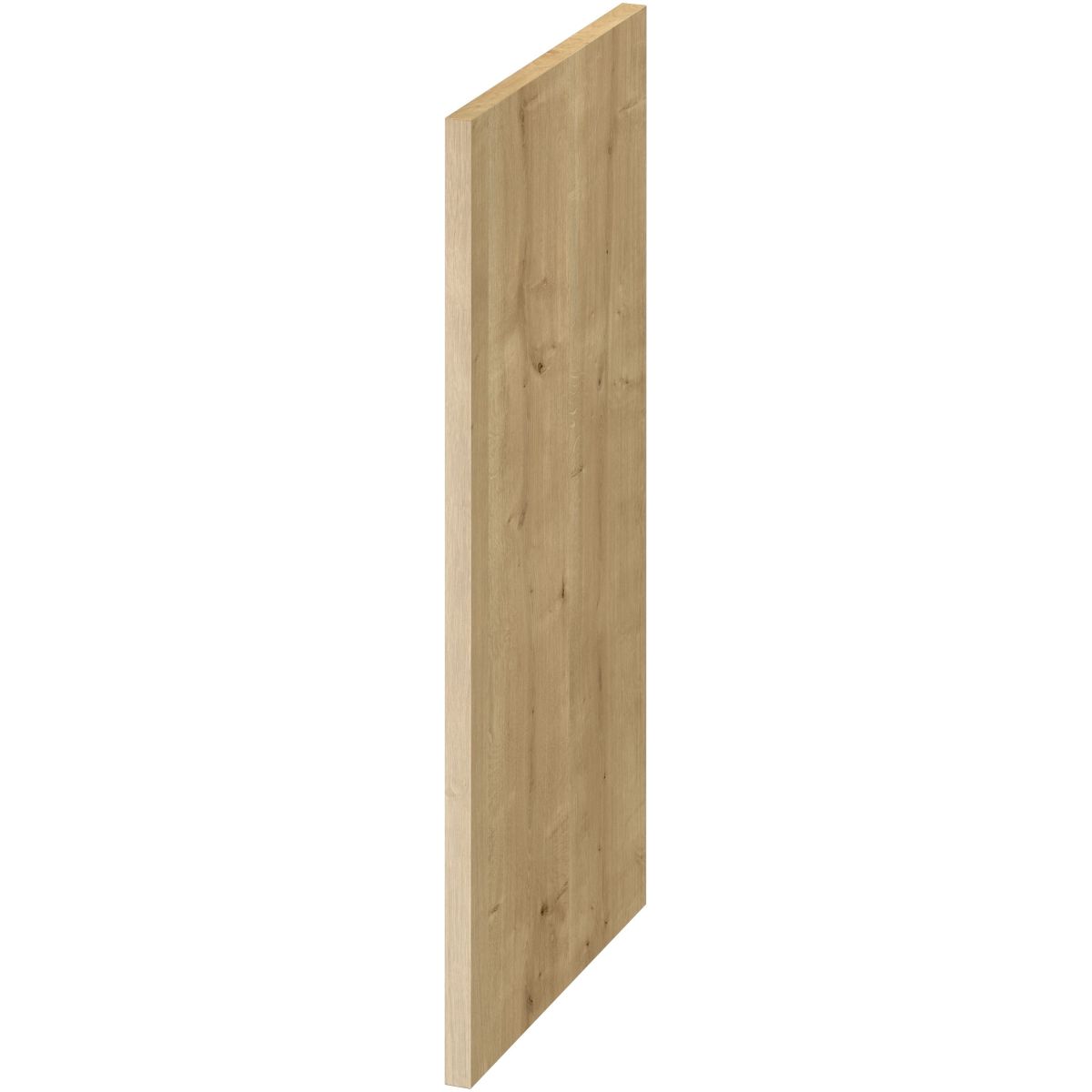 Parete laterale per mobili da montare sotto il piano di lavoro, che rifinisce armoniosamente i moduli sottostanti. Realizzata in pannello truciolare color rovere.