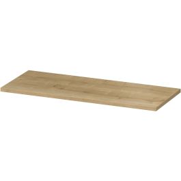 Un piano di lavoro da configurare con un mobile sottopiano, sul quale si può montare un lavabo o collocare oggetti e cosmetici a portata di mano. Il piano di lavoro è realizzato in truciolato laminato in rovere.