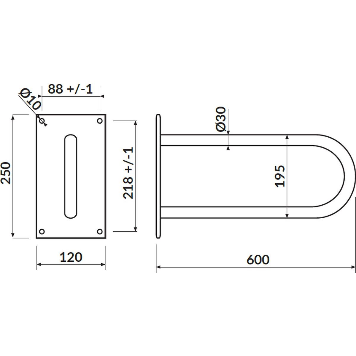 - piastra di montaggio a parete di 6 mm di spessore con 4 fori di montaggio di 10,5 mm di diametro
