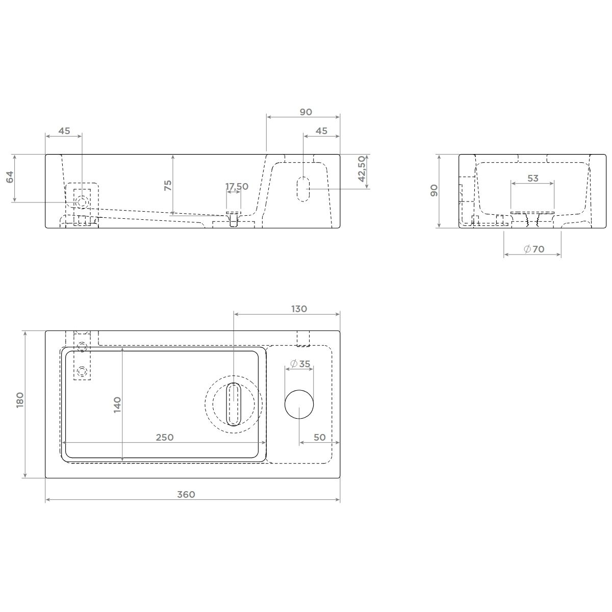 Clou Flush lavabo 36x18 cm rettangolare a parete-da appoggio rosa CL/03.40030