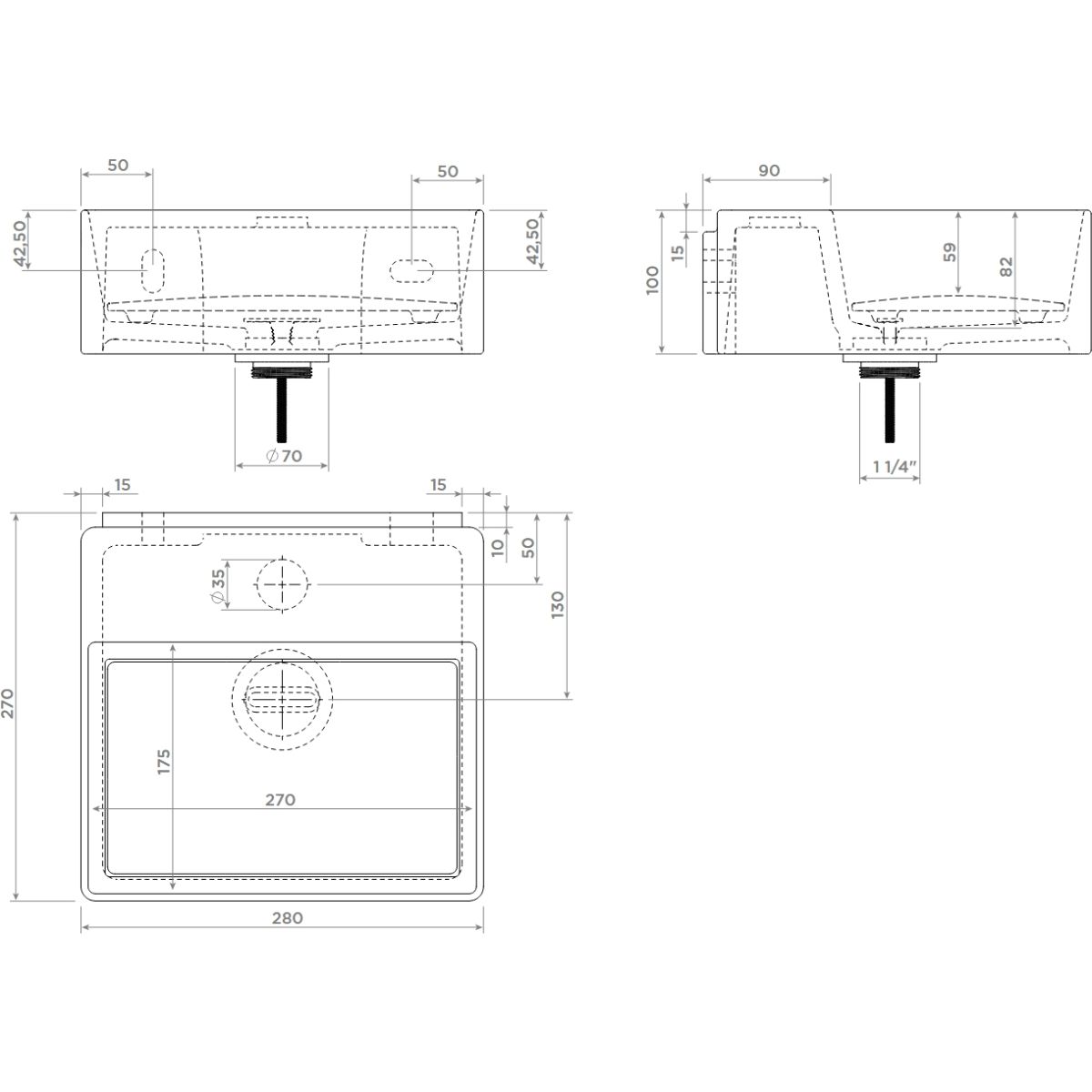 Posizione della vasca del lavabo: universale
