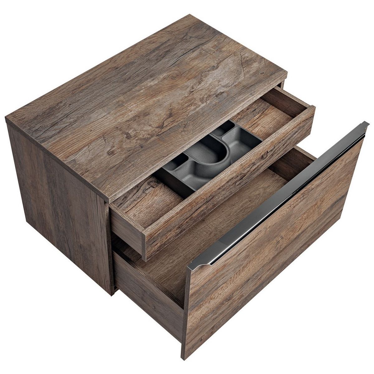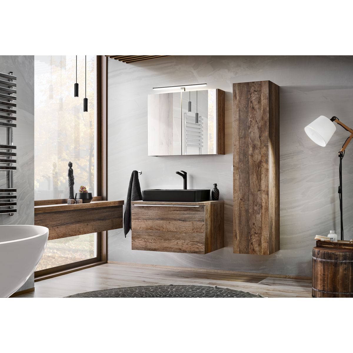 Piano d'appoggio per il bagno realizzato in pannello laminato nel colore rovere Vintage. Elemento indispensabile di un mobile lavabo della stessa serie di dimensioni 60 cm.