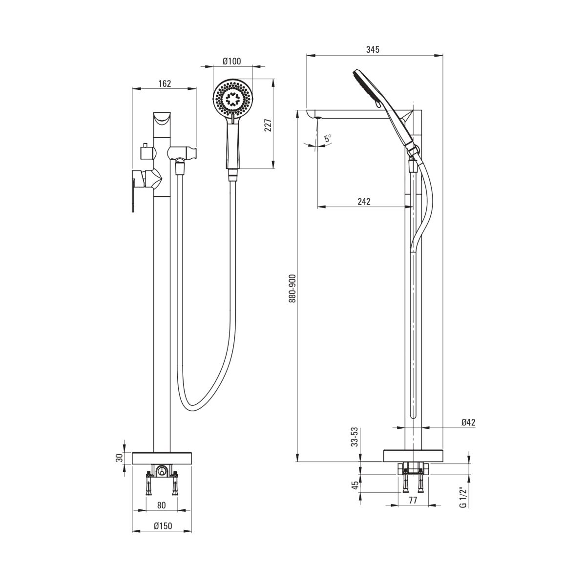 Il set di miscelatori per vasca freestanding con doccia della linea completa Alpinia si abbina perfettamente a un bagno modernista con vasca freestanding. La sua altezza e il montaggio a pavimento conferiscono all'ambiente un carattere estetico e discreto. Grazie alla sua finitura opaca Nero e alla superficie liscia, questo miscelatore delizierà il suo utilizzatore per anni. Inoltre, il miscelatore per vasca presentato è stato dotato di un interruttore meccanico in ceramica ora aeratore per aerare il flusso dell'acqua.
