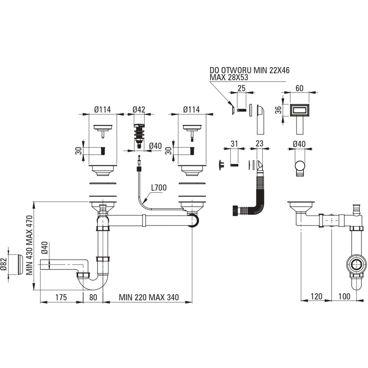 - sifone salvaspazio per una facile separazione dei rifiuti, tra l'altro
