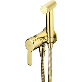 Questo miscelatore da parete per bidet ad incasso in finitura oro è il complemento perfetto per un bagno arredato con altri pezzi della collezione Arnika. Questo rubinetto monocomando è dotato di una funzionale manopola tipo bidetta con interruttore di avvio/arresto, integrata nel rubinetto tramite un lungo tubo doccia. Il pulsante di avvio/arresto consente di attivare e disattivare il getto al momento desiderato, il che non solo è estremamente comodo, ma contribuisce anche a ridurre il consumo di acqua. Il miscelatore bidetta è dotato di una manopola Cool-out, che non si riscalda se esposta all'acqua calda. Le rubinetterie di tipo bidetta contribuiscono a mantenere l'igiene personale e la pulizia del bagno. Il tubo flessibile consente inoltre di pulire a fondo la toilette o di riempire d'acqua un secchio, un vaso o un annaffiatoio.