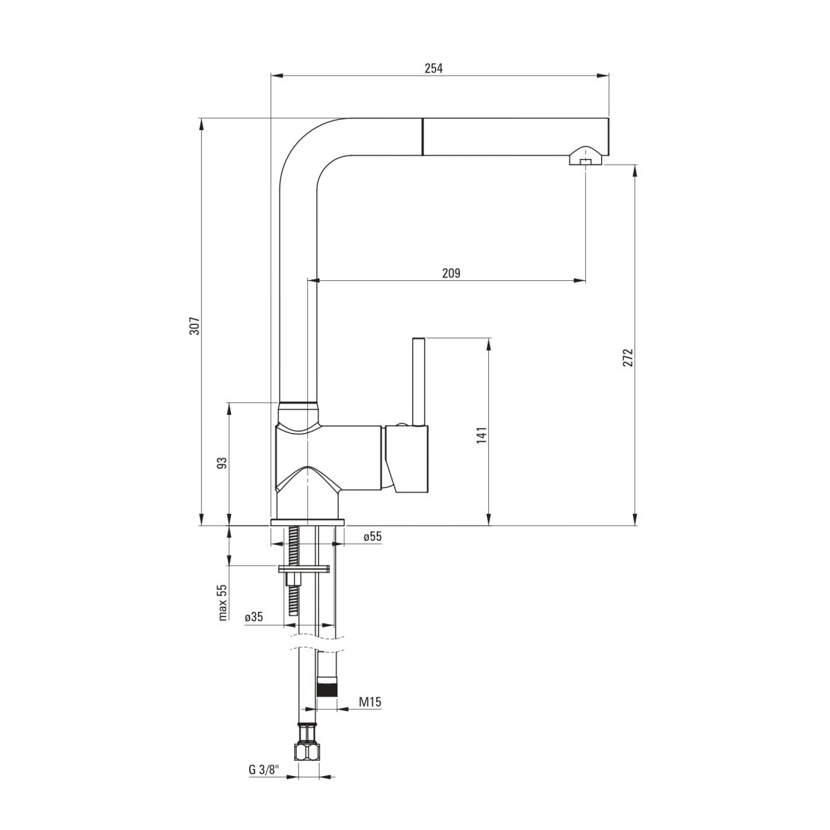 Il miscelatore Aster con bocca estraibile si distingue per il suo design moderno e la sua funzionalità . Il corpo alto e la bocca estraibile facilitano il lavoro in cucina intorno al lavello. Lavare frutta, verdura e riempire d'acqua piatti alti è ora estremamente facile. Il miscelatore è dotato di una leva laterale che può essere azionata con un dito o con il polso in caso di mani sporche. L'elegante finitura nera opaca è resistente e si adatta perfettamente ad ambienti moderni o industriali.