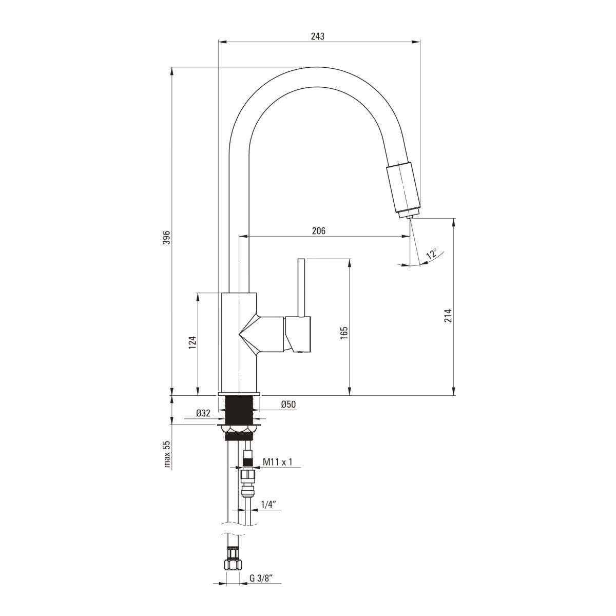 - altezza totale del miscelatore: 39,6 cm
