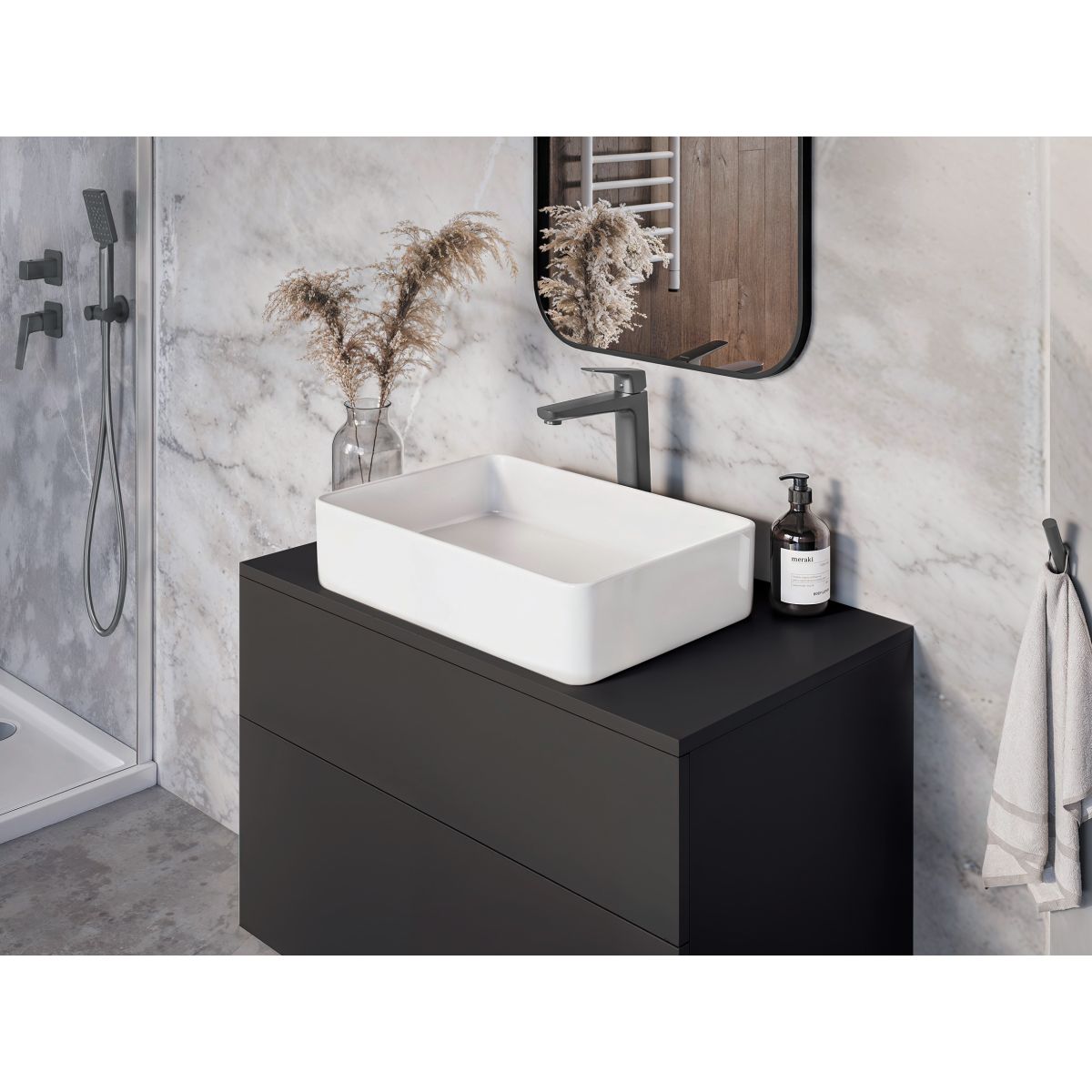 Elegante set da incasso composto da soffione, doccetta con attacco angolare, flessibile e miscelatore. Il soffione di forma quadrata fornisce un getto d'acqua uniforme e confortevole. Realizzato con materiali di alta qualità , è durevole e resistente alla corrosione. Il set è inoltre dotato di un rubinetto a scomparsa con leva ergonomica, che consente di regolare con precisione la temperatura e l'intensità del getto d'acqua. Rifinito nell'originale colore Titanium, l'intero set si integra perfettamente in ambienti bagno sia moderni che classici. Grazie al design a incasso, i componenti dell'installazione sono discretamente nascosti, conferendo al bagno un aspetto minimalista e ordinato.