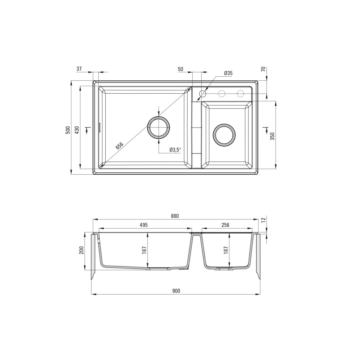 - taglio nel piano di lavoro (incassato) - lunghezza: 86 cm