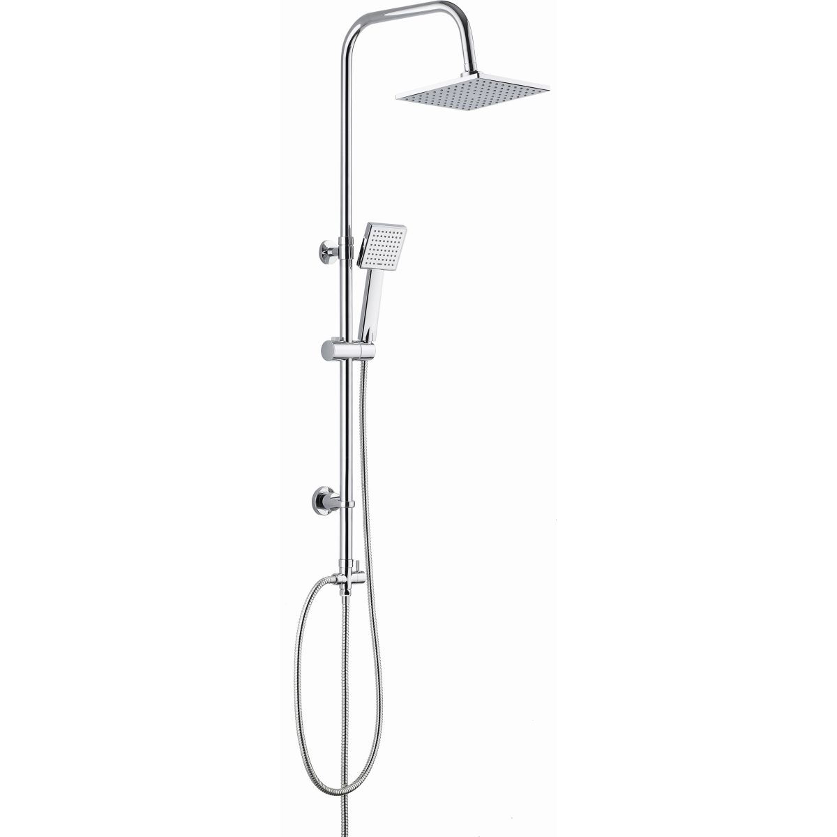 La doccia a pioggia Floks si distingue per l'originale testa e la cornetta quadrata, dotata di sistema anti-clac e di un piacevole getto a pioggia. La barra è realizzata in acciaio inox e presenta un angolo regolabile per la manopola della doccia. L'intera unità è rifinita in elegante cromo lucido. Un interruttore di funzione meccanico in ceramica permette di cambiare il flusso d'acqua tra il soffione e la manopola, anche a bassa pressione.