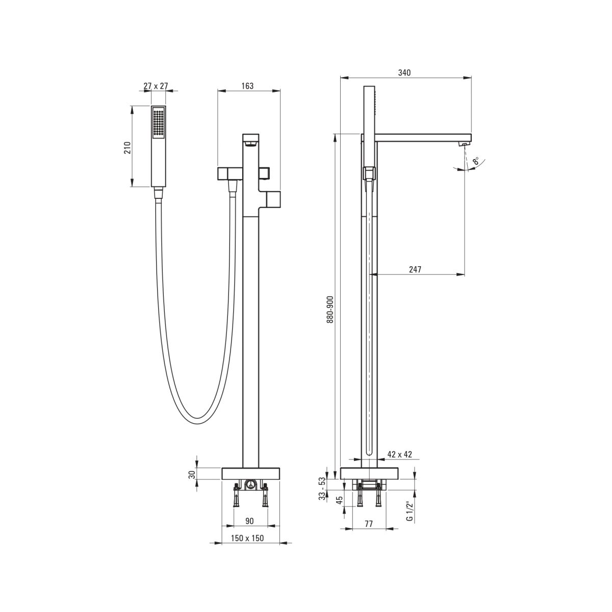Il miscelatore per vasca a colonna della serie Hiacynt è la soluzione perfetta per una vasca da bagno indipendente. È dotato di un meccanismo monoleva che consente un controllo comodo e preciso della temperatura e del flusso dell'acqua. È dotato di un interruttore di funzione meccanico in ceramica. Consente di commutare facilmente il flusso d'acqua tra l'erogatore della vasca e la manopola della doccia. Il miscelatore per vasca a colonna della serie Hiacynt non è solo bello e funzionale, ma anche solidamente costruito. Realizzato con materiali di alta qualità, garantisce durata e affidabilità per molti anni.