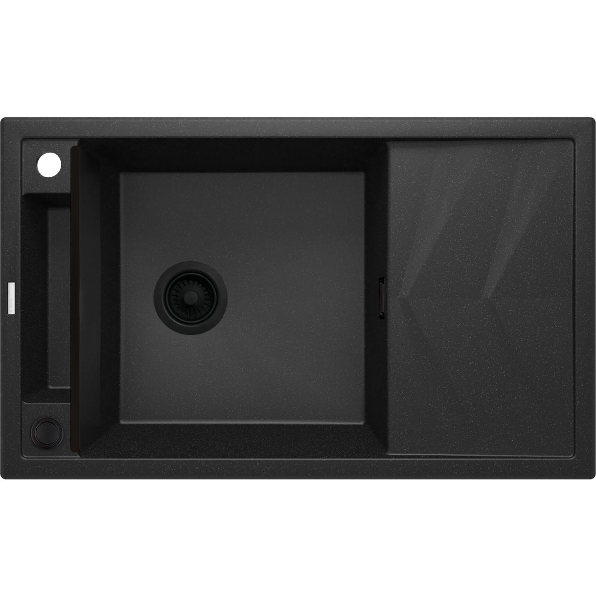 Il lavello in granito Magnetic è dotato di proprietà magnetiche che gli consentono di organizzare rapidamente il suo spazio con utili accessori - senza ulteriori fissaggi. È un modello con una capiente vasca e un pratico sgocciolatoio con un motivo a spina di pesce che accelera il drenaggio dell'acqua. Il lavello è dotato di magneti, grazie ai quali è possibile posizionare un coperchio in acciaio sul lato della vasca. L'elegante cornice separa la vasca dal ripiano laterale, che può essere utilizzato, ad esempio, per asciugare le posate. Al posto della griglia, al lavello possono essere fissati dei cestini, un binario e un gancio, che possono essere acquistati da Deante.