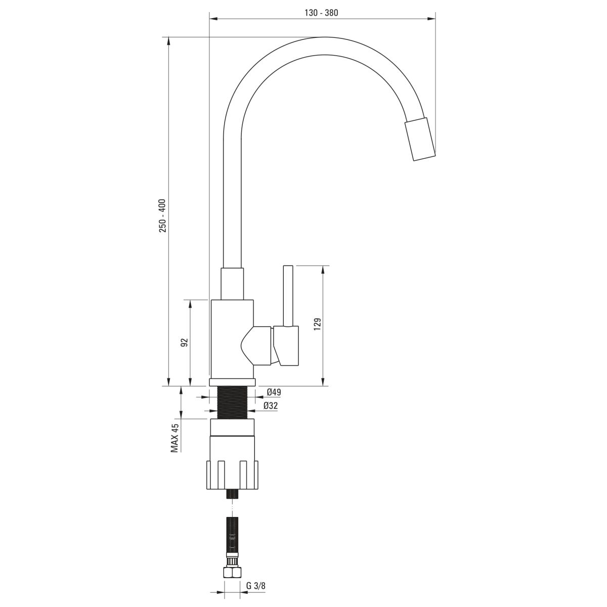 Questo funzionale rubinetto da cucina è stato progettato tenendo conto dell'elevata usabilità e dell'estetica. Il design elegante lo rende adatto agli interni moderni, ma anche a quelli scandinavi o più tradizionali. Il miscelatore per lavello è dotato di un aeratore che riduce la durata dell'acqua, aspetto molto importante quando si lavano i piatti a mano. Inoltre, il getto aerato è più morbido. È un modello con una bocca pratica e flessibile.