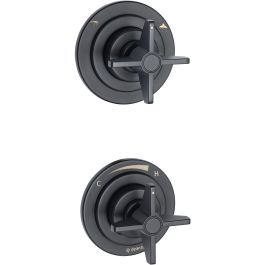 Il miscelatore doccia Temisto si distingue per le sue originali manopole stilizzate. Si tratta di un modello a incasso che garantisce un livello di igiene superiore e offre maggiori possibilità di creare lo spazio del bagno. Temisto è un miscelatore monocomando. Una delle manopole è una testa di miscelazione progressiva; ruotandola in senso orario, l'acqua diventa gradualmente sempre più calda fino a raggiungere la temperatura desiderata. L'altra manopola è un interruttore di funzione in ceramica, che consente di commutare la fonte d'acqua tra la doccia a pioggia e la doccetta. Il miscelatore è realizzato in ottone resistente e duraturo. La finitura nera opaca si adatta bene sia agli ambienti tradizionali che a quelli moderni.