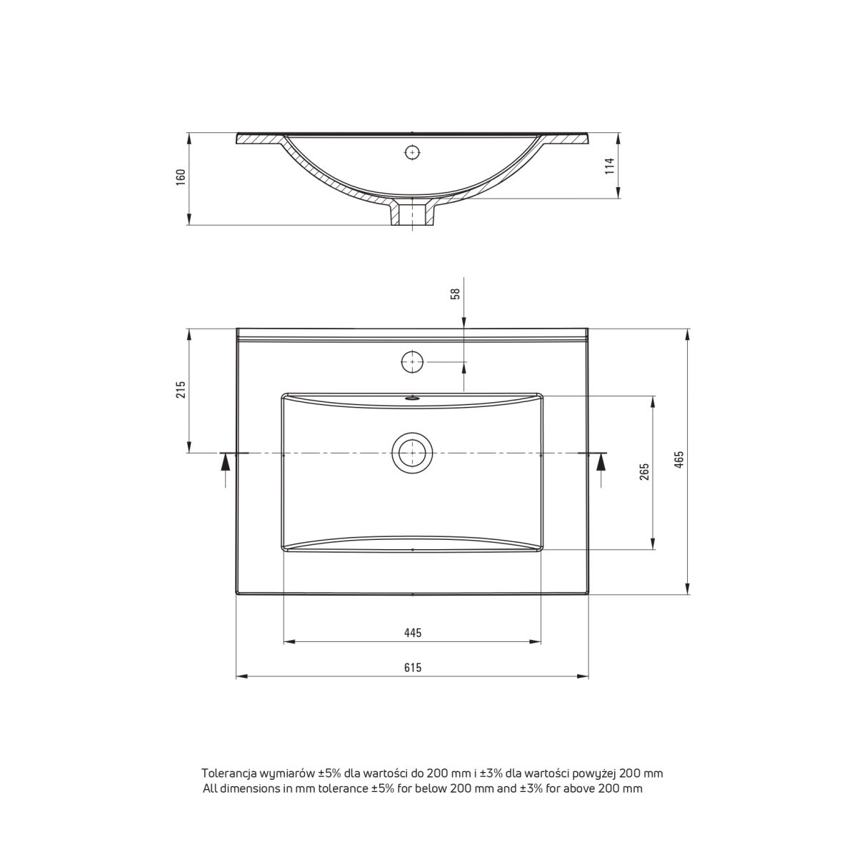 Deante Tubo lavabo 61.5x46.5 cm rettangolare da mobile bianco CTU_646M