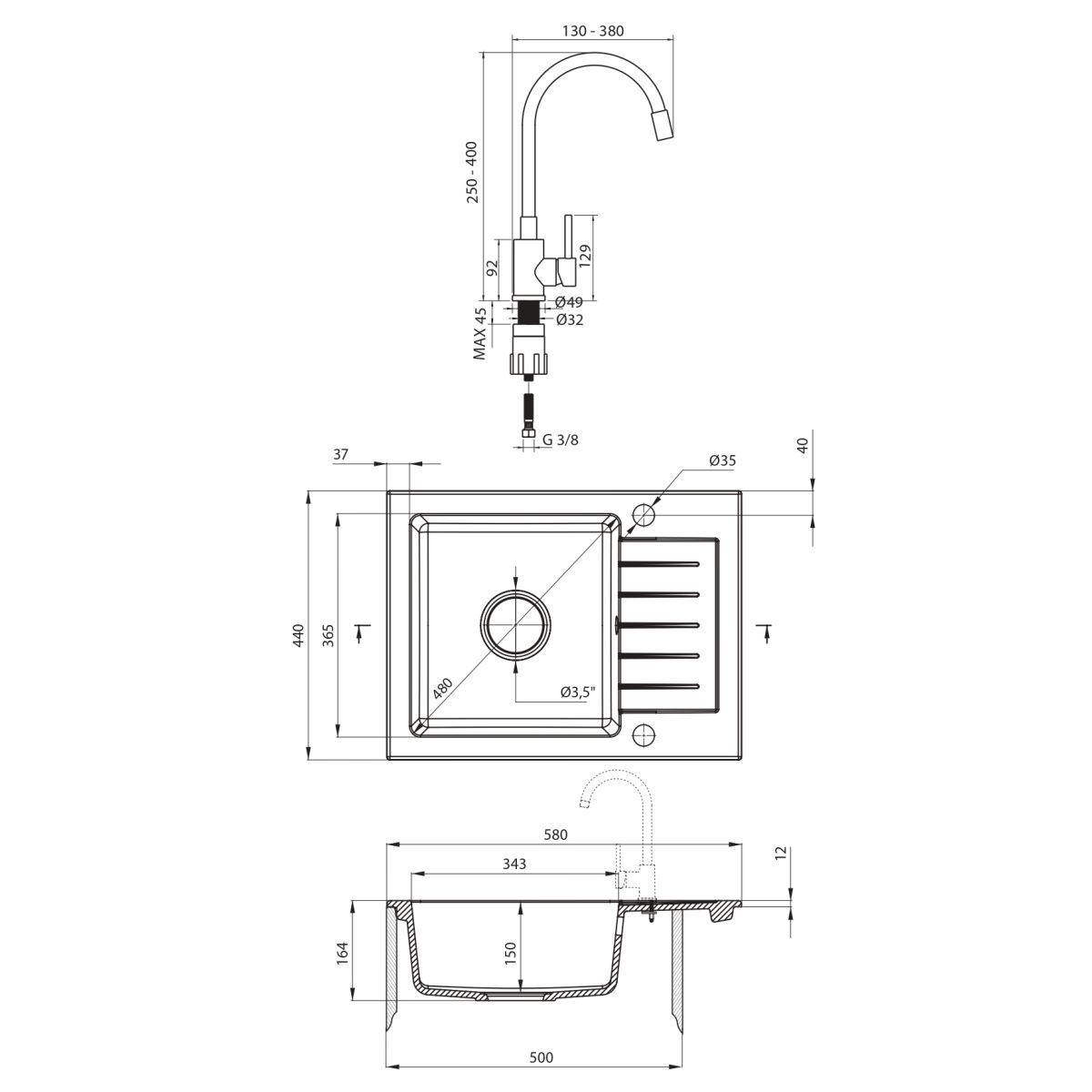 - materiale del lavello: granito
