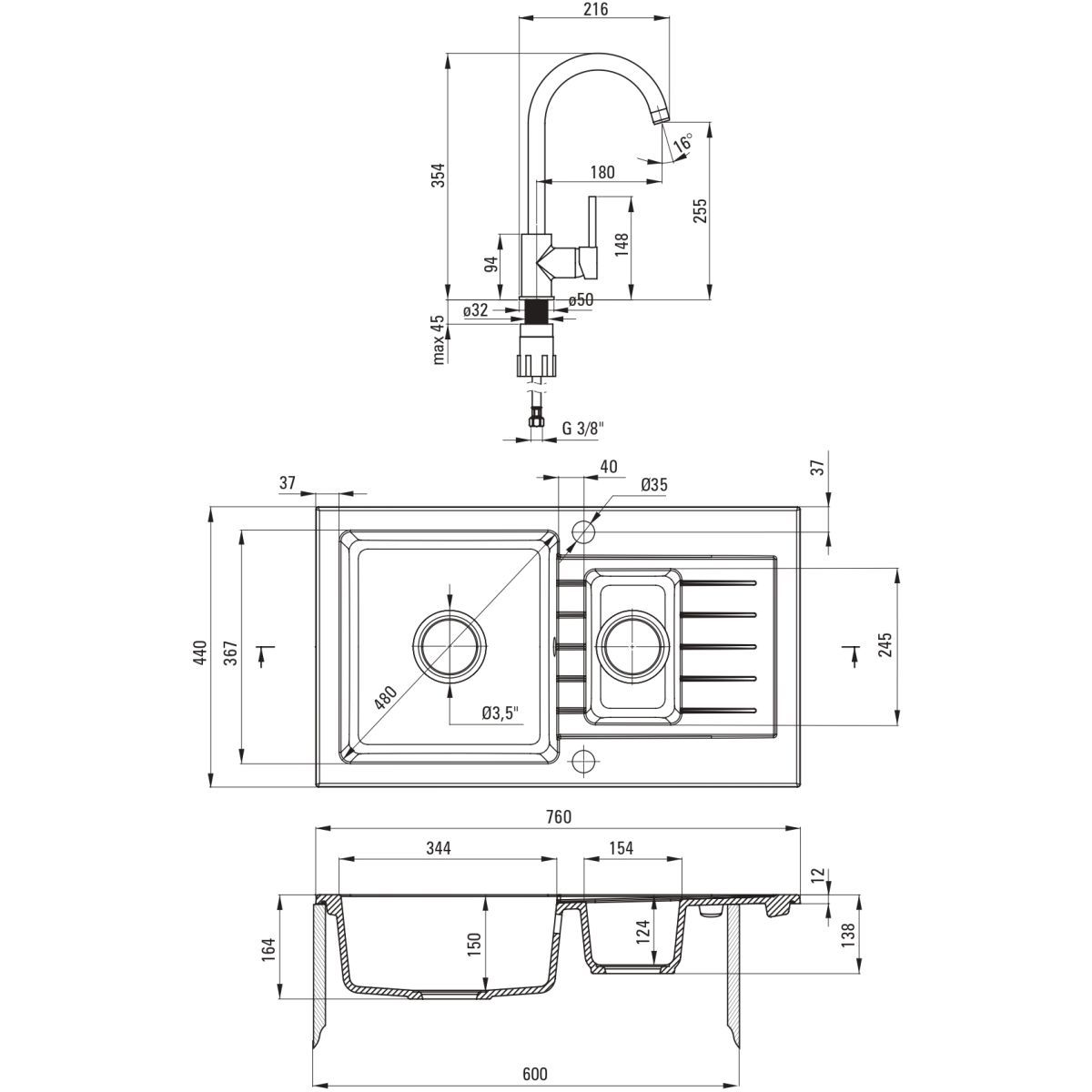 Il lavello in granito Zorba a 1,5 vasche con una vasca spaziosa e un'altra più piccola, di forma rettangolare con sgocciolatoio, è un prodotto che si inserisce perfettamente in cucine minimaliste o scandinave. L'elegante colore grafite contrasta con un piano di lavoro chiaro, in pietra o in materiale composito, oppure si fonde perfettamente con il nero circostante per un elegante effetto monocromatico, mentre la lucentezza metallica delle particelle di alluminio introduce un elemento di stravaganza. Il set comprende anche un sorprendente miscelatore per lavello con corpo rialzato e bocca a U in colore grafite, che accentua lo stile minimalista. Il lavello qui presentato è realizzato in granito e presenta tutti i vantaggi tipici di questo materiale estremamente duro e resistente all'usura. Tra questi, la resistenza alle macchie, ai graffi, agli shock termici, alle temperature di 250° e agli urti. Inoltre, i lavelli della collezione hanno proprietà idrofobiche, il che significa che la loro superficie non solo è impermeabile alle particelle d'acqua, ma le respinge anche, rendendo molto più facile la pulizia.