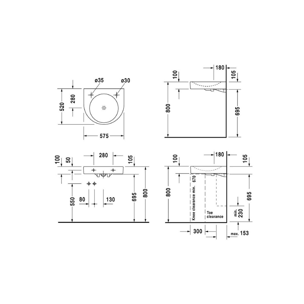 Duravit Architec lavabo 57.5x52 cm semicircolare a parete bianco 0443580000