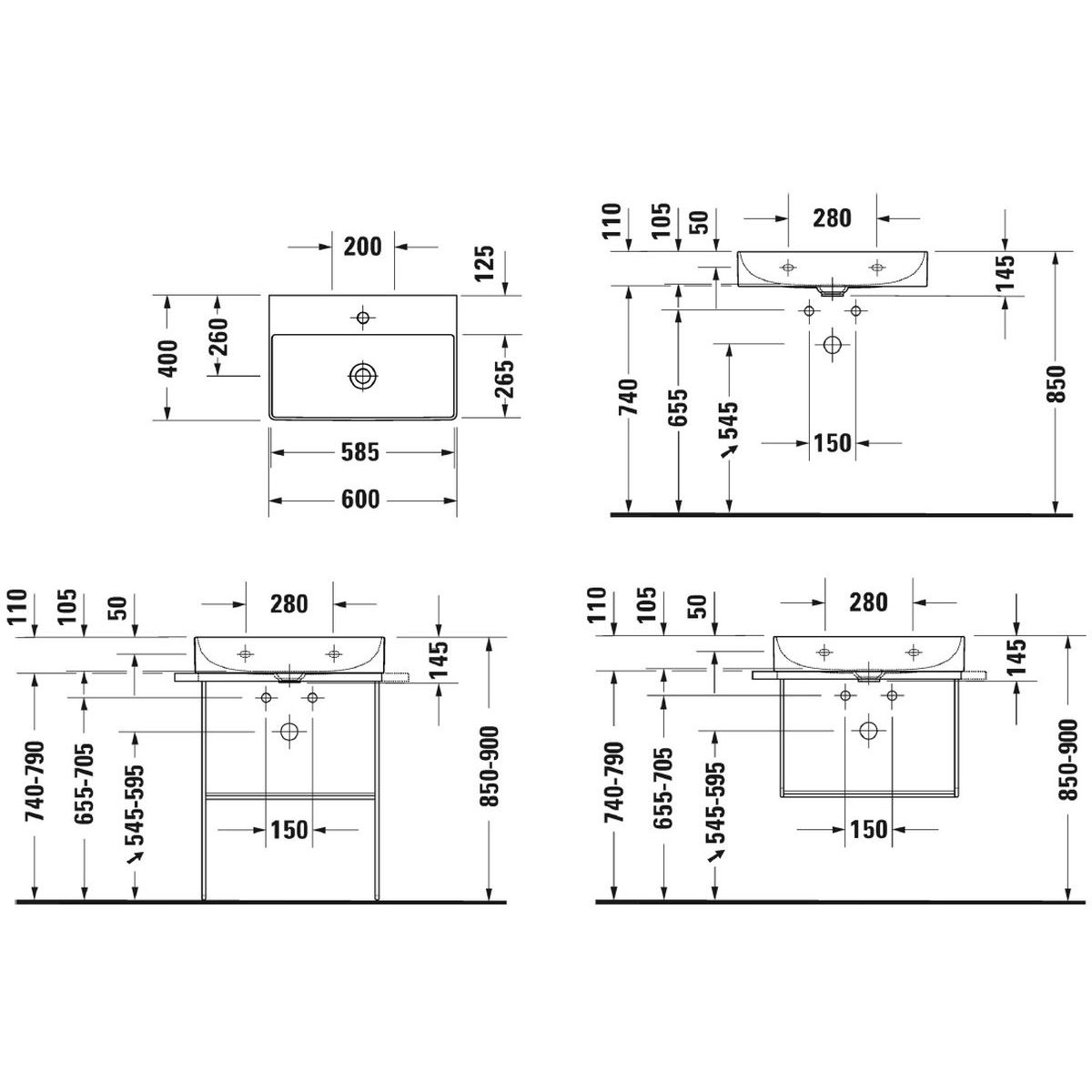 Duravit DuraSquare lavabo 60x40 cm rettangolare a parete-da mobile bianco 2356600041