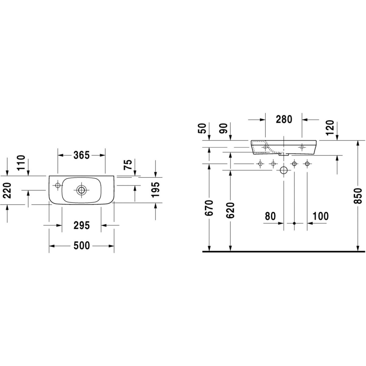 Duravit DuraStyle lavabo 50x22 cm rettangolare a parete bianco 0713500009